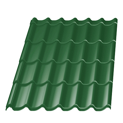 Металлическая черепица Меркурий цвет RAL 6002 Зеленый Лист имеет профиль внешне на кровле напоминающий классическую керамическую черепицу. Меркурий — это обновленный аналог профиля металлической черепицы для кровли крыши. Форма профиля имеет богатый внешний вид напоминающий небольшие набегающие волны. Лучшие показатели герметизации сделали профиль Меркурий гарантом стабильной и долговременной службы на крышах в Темиртау. Данный профиль отличается не только своим качеством и практичностью, но и благородным внешним видом.