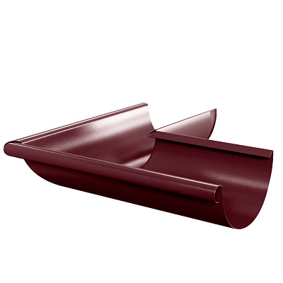 Угол желоба водостока наружный 90 градусов d125мм RAL P363 Вишня металлический - используется для надежного сопряжения двух желобов между собой на углах 90 градусов карниза кровли. Угол желоба изготовлен без сварных сопряжений, методом прессования (глубокая вытяжка), что придает ему дополнительную коррозийную и механическую стойкость.