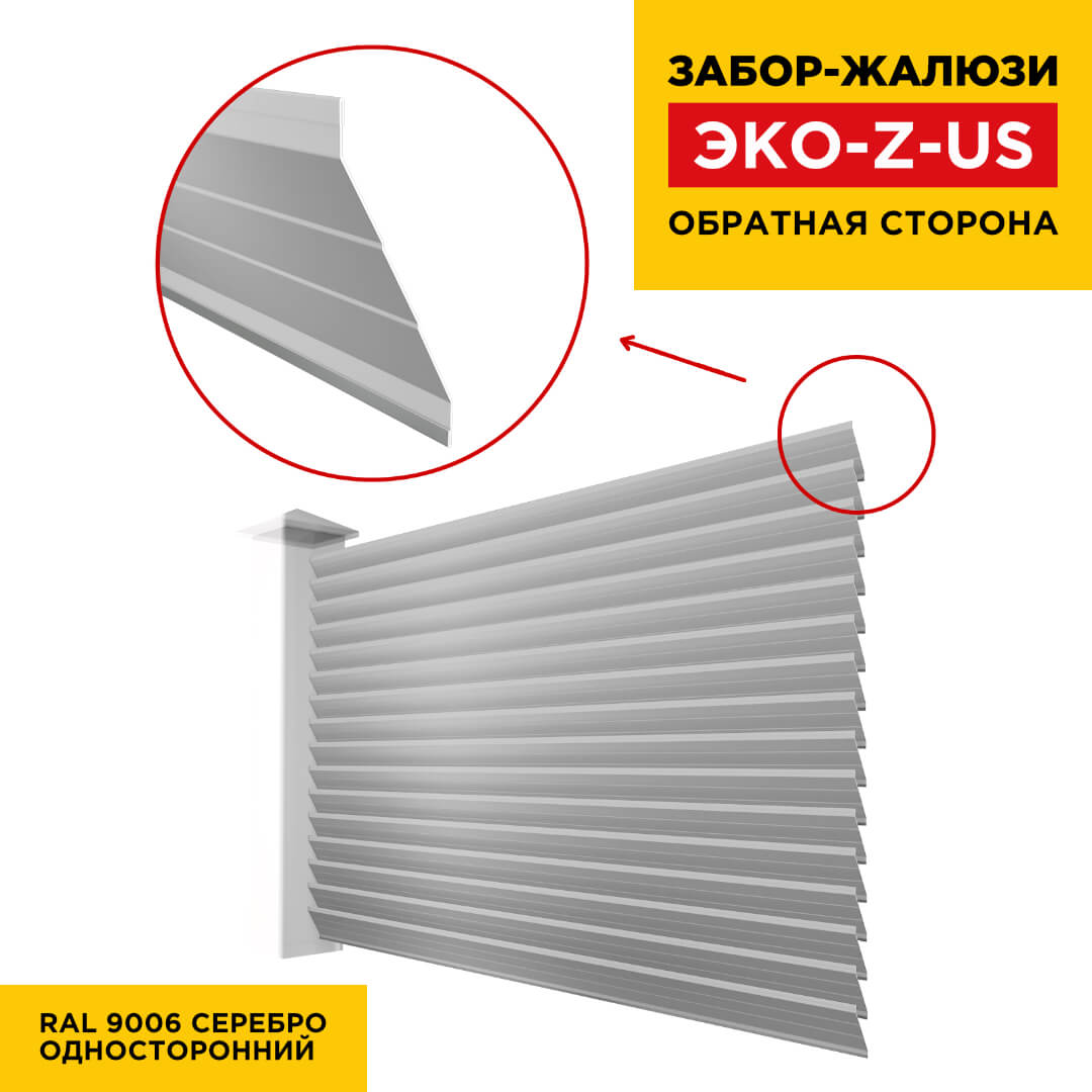 Ламель металлическая Z-образная усиленная ЭКО-Z-US, цвет RAL 9006 Серебро, длина любая кратно 1см под заказ - для забора-жалюзи, беседки, перголы в Темиртау